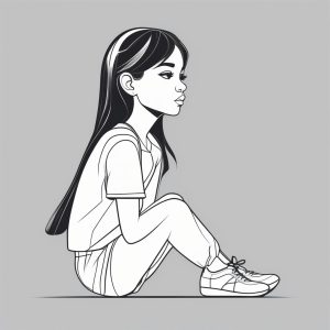 生成几何向量风格的Q版时尚女孩。穿着抽象几何连衣裙,全身站立,强调锐利的线条和极简主义美感,背景为纯灰色。