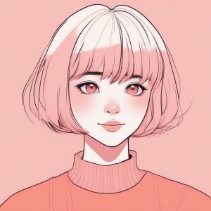在极简风格基础上,融入几何块状阴影,创造出像素艺术感的少女肖像,使用低饱和度配色。