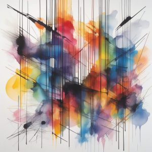 AI art prompt English – Geometric Vortex: Exploding Rainbow Watercolor and Crisp Line Art