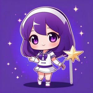AI art prompt English – Minimalist 2D Magical Girl Chibi Full Body: Anime Style Character Illustration Prompt
