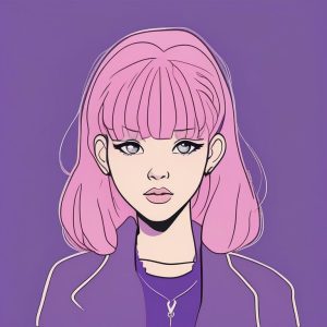 极简90年代复古VHS动漫风少女肖像,直发棕发女孩,背景为浅绿色纯色。插画整体干净,用基本形状和极少细节表达。无阴影与纹理,主体居中。全画风格来自VHS录影带和90年代动漫,女孩表情平静略带忧郁。