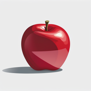 Minimalist flat vector illustration of a shiny red apple, solid white background, simple round shape, minimal highlights, no texture, bold black outline, vintage 70s vector illustration style, clean and inviting composition.