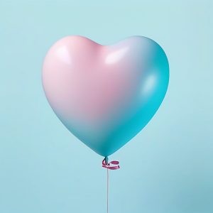 一个极简风格全身二次元女孩,手拿气球,背景为无图案的纯色,平涂色彩,服装简约,可爱且富表情的微笑,站姿直腿,轮廓线清楚且无多余阴影。