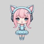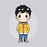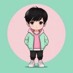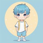 Minimalist Anime Kawaii Chibi Boy in Blue Hoodie