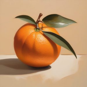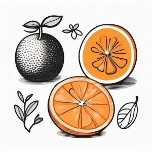 A cartoon minimalist anime-inspired illustration of a single orange fruit, set against a clean solid light green background. The orange is boldly outlined, filled with flat orange and yellow colors, no texture or shadow, highlighting its round shape and playful mood.