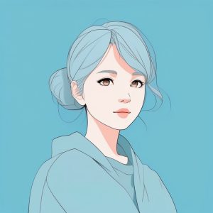Minimalist Anime Girl Close-up on Blue Background