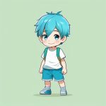 Minimalist Anime Kawaii Chibi Boy in Blue Sporty Style
