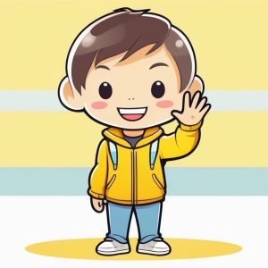 Minimalist Anime Kawaii Chibi Boy Full Body on Yellow Background – Jump Pose