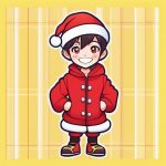 Minimalist Anime Kawaii Chibi Santa Girl Full Body Portrait