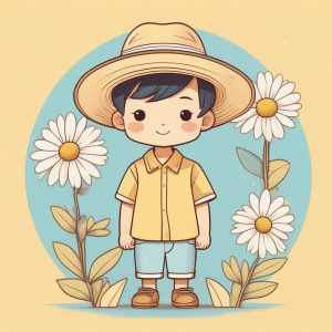 Minimalist Anime Chibi Girl with Straw Hat