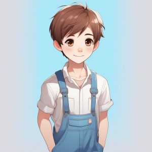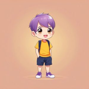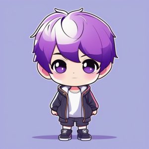 Minimalist Anime Kawaii Chibi Boy with Short Hair and Purple Background