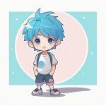 Minimalist Anime Chibi Marine Blue Short-haired Childlike Girl