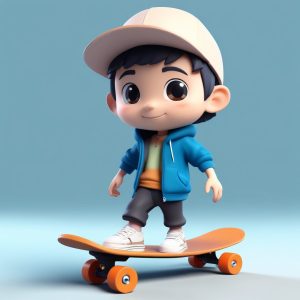 AI art prompt English – Minimalist Anime Chibi Skater Boy Prompt