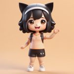 AI绘画提示词中文:极简动漫Q版角色:毛绒兔耳针织衫粘土盲盒设计