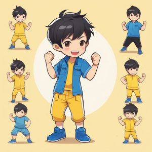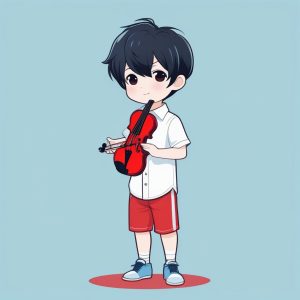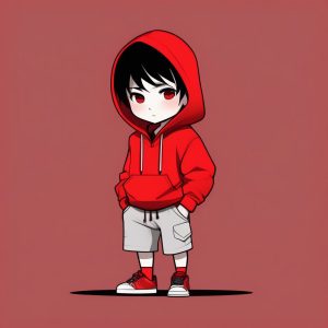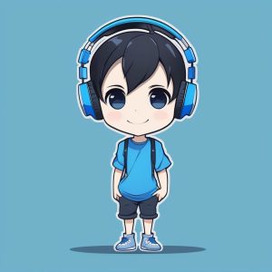 Minimalist Kawaii Chibi Anime Boy with Skateboard