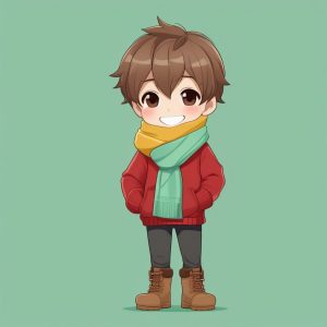 Minimalist Anime Chibi Boy: Purple Apron Chef
