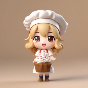 AI art prompt English:Minimalist Anime Chibi Girl: Pink Astronaut Blind Box Clay Figure 3D Render