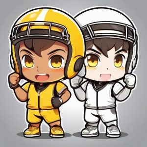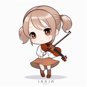 Minimalist anime chibi girl full body, standing with a big red umbrella, solid pastel purple background, clean and plain, thick cartoon outline, flat coloring, short hair with bangs, shiny wide eyes, cute bright smile, no pattern or detail in the background.
