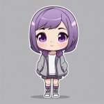 Minimalist Chibi Anime Soft Purple Long-curly Girl Spring Healing