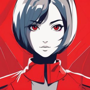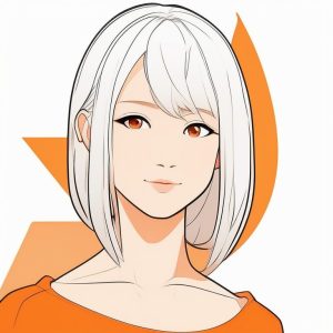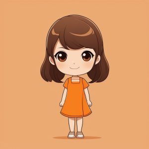 Minimalist anime girl portrait, short hair, wearing a simple yellow dress, placed on an orange solid color background. No accessories or detail, flat style, clean outlines, bright and simple visuals.