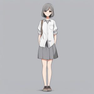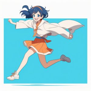 Minimalist Anime Style Girl Full Body – Playful Tongue Out on Orange Background