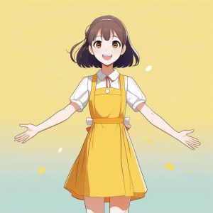 Minimalist Anime Style Girl Full Body – Jumping Girl with Blue Background