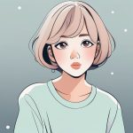 Minimalist Anime Style Girl Portrait – Light Blue Short Hair Girl