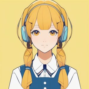 Minimalist Anime Style Girl Portrait – Light Blue Short Hair Girl