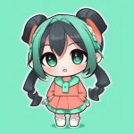A minimalist anime-style illustration of a girl with long, flowing pink hair. The portrait features a solid pastel green background, completely clean and simple. The girl’s eyes are big and calm, with minimal detail. The skin tone is flat and softly colored. The drawing has thick outlines, no shading, and the clothes are single-colored turtleneck. The focus is on a peaceful and gentle appearance. The composition is uncluttered, with no additional accessories.