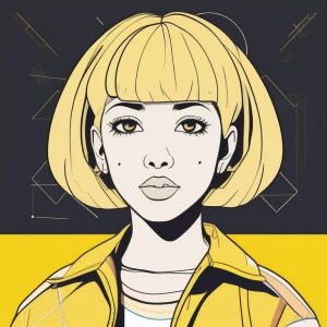 Minimalist Anime Short-haired Girl Portrait with Yellow Background