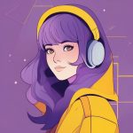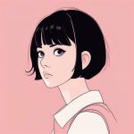 Minimalist Anime Girl Portrait: Playful Green-haired Girl