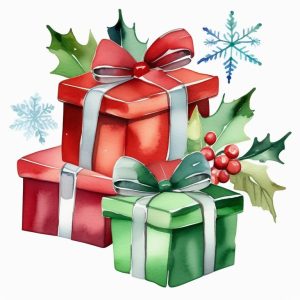 Minimalist watercolor clipart depicting a single red Christmas ornament in spherical shape, rendered in bright washes of color. The clean illustration sits on a solid pale blue background, with no additional decorations or patterns. Emphasizing simplicity and festive cheer, the subject is bold and easy for children to recognize, using soft gradients and crisp outlines.
