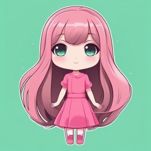 Minimalist Anime Chibi Girl in Green Dress Cute Full Body Portrait