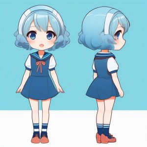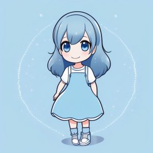 一个极简二次元少女全身照,热情地挥手,使用明亮的平涂色彩,背景为纯色而且单一,面部特征简洁明了,穿着简单,无多余阴影,大而闪亮的眼睛,微微倾斜的头部,姿势活泼有朝气,线条干净粗犷。