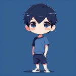 AI art prompt English:Minimalist Style Chibi Boy: Full Body in Glasses and Blue Overalls