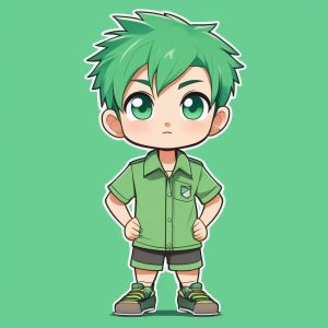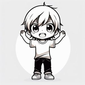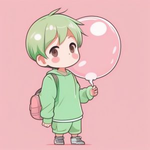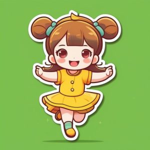 Minimalist Chibi Girl Full Body Illustration with Purple Background