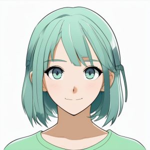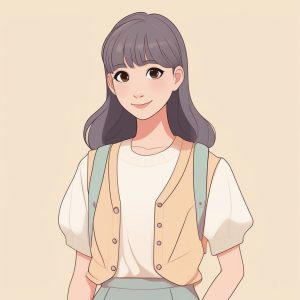 A full body minimalist anime girl balancing playfully on one leg, arms stretched out, plain solid color backdrop, basic school uniform, cheerful childlike smile, round eyes with highlights, clean unembellished lines throughout.