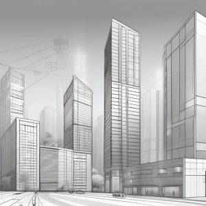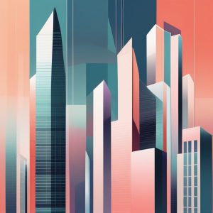 AI art prompt English:minimalistic style, urban nightscape, high-rise buildings in soft gradients, glowing windows, serene street lights, dark blue background, stylish poster design