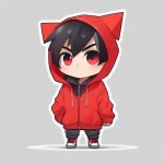 Minimalist Cute Chibi Anime Santa Claus Standing on Solid Orange Background