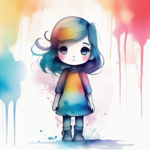 AI art prompt English – Minimalist Soft Focus Abstract Watercolor Chibi Girl