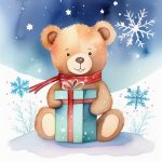 A kawaii chibi anime style portrait of a small bear character with big round eyes and a tiny blue scarf, placed on a minimalist solid yellow background. Clean and simple design, flat coloration, thick outlines, no gradients, cuteness emphasized, joyful and childlike appearance.