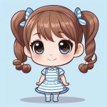 A full body minimalist anime chibi girl, blonde hair in ponytail, yellow sleeveless shirt, cheerful wide smile, standing on a plain pastel background, bold smooth outlines, no extra design, soft color palette