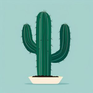 极简概念艺术插图,一株仙人掌种在现代感白色陶瓷花盆里,置于纯粉色背景。仙人掌用简单的几何线条勾勒,无阴影和渐变,仅有纯净柔和的绿色和白色。画面十分干净,主体周围留有空白以达到平衡。背景中没有任何图案或多余细节,突出仙人掌本身。