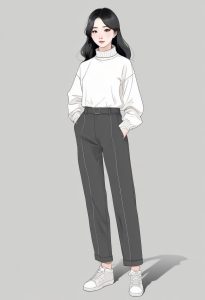 掌握静奢风AI绘画秘诀。侧面描绘穿着柔软羊绒衫的时尚女孩,利用纹理纸质感打造低饱和度的优雅插画