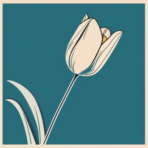 极简韩式数字插画,描绘一朵黄色郁金香,背景为柔和薄荷色纯色。花朵用精致线条和平滑圆润形状表现,无阴影和背景元素,色彩柔和清新,表达纯真明亮的感觉。