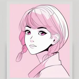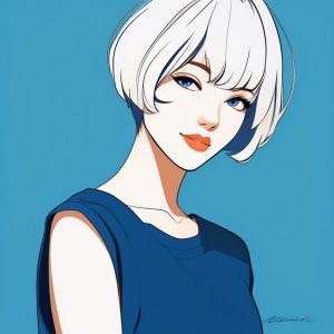 极简黑发少女肖像配石蓝底色
