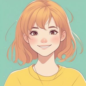 极简主义二次元少女肖像,黑色直发,大而含蓄的眼神,石蓝色纯色背景。平面线条,无阴影,温和的微笑表情,背景无任何细节。