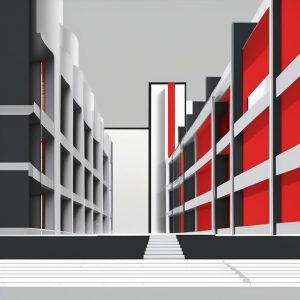 Brutalist bauhaus architecture poster, minimalist perspective of concrete building, sharp geometric forms, limited grayscale palette, strong light and shadow, clean crisp edges, modern architectural design, imposing and artistic mood