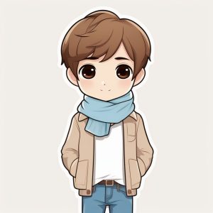 Minimalist Kawaii Chibi Anime Boy with Lemon Yellow Scarf