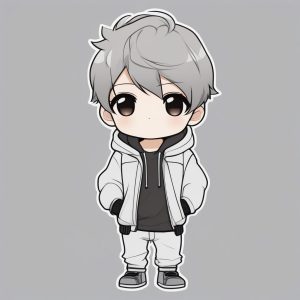 Minimalist Kawaii Chibi Anime Boy with Blue Hair